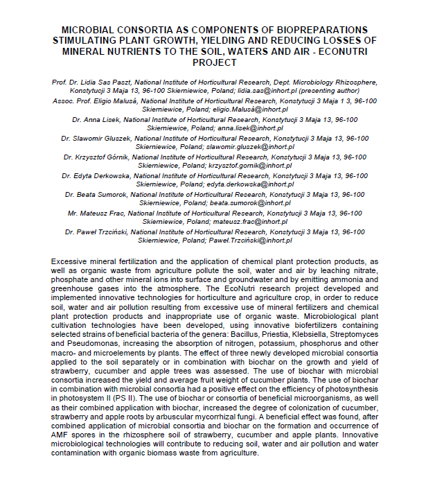 Organized by INHORT together with ISHS, and with Prof. Lidia Sas-Paszt among the organizers, the symposium provided an important platform for sharing research and strengthening dialogue on sustainable and environmentally friendly solutions for horticulture.